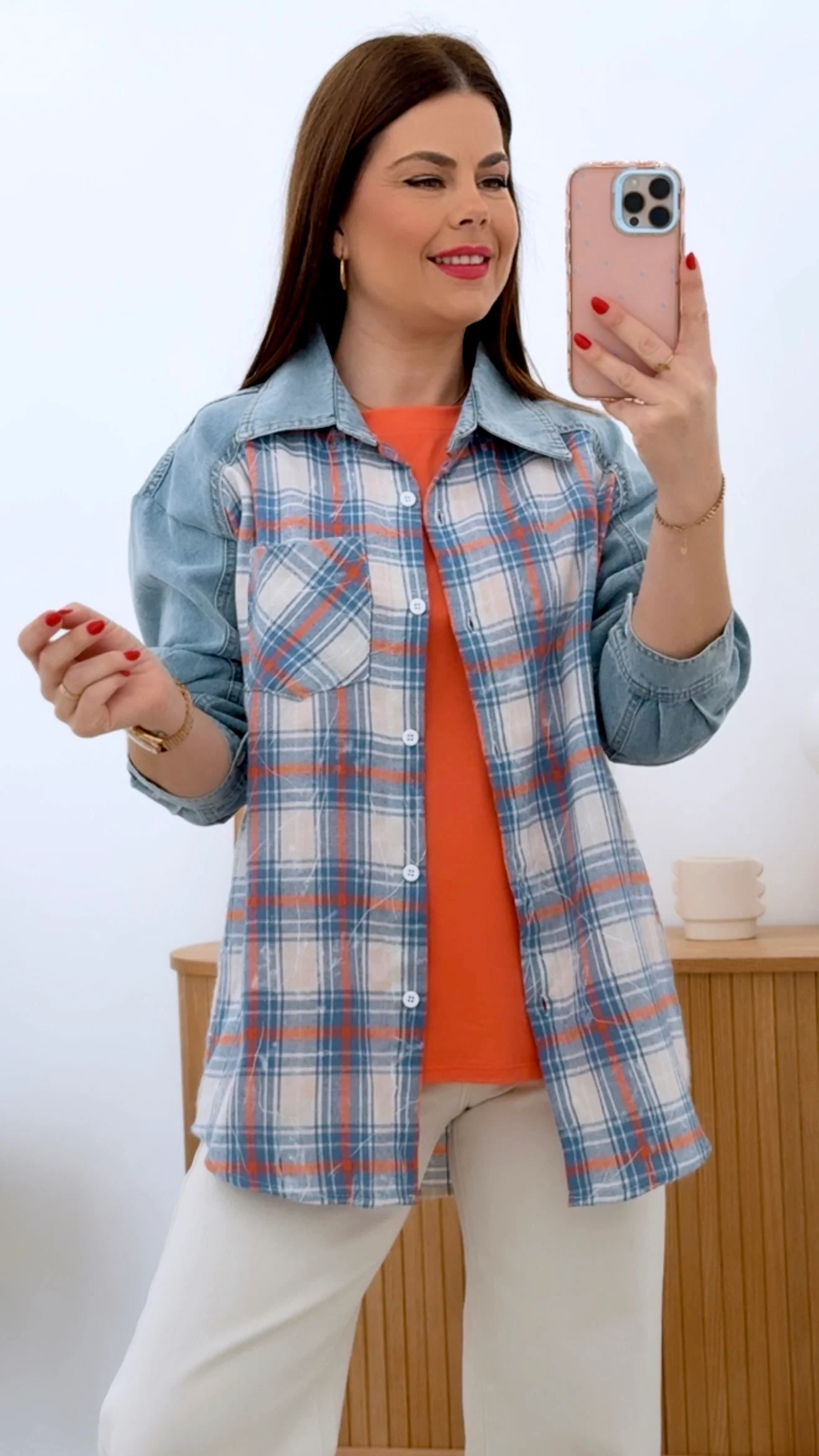 CAMISA COMBINADA MANGAS DENIM
