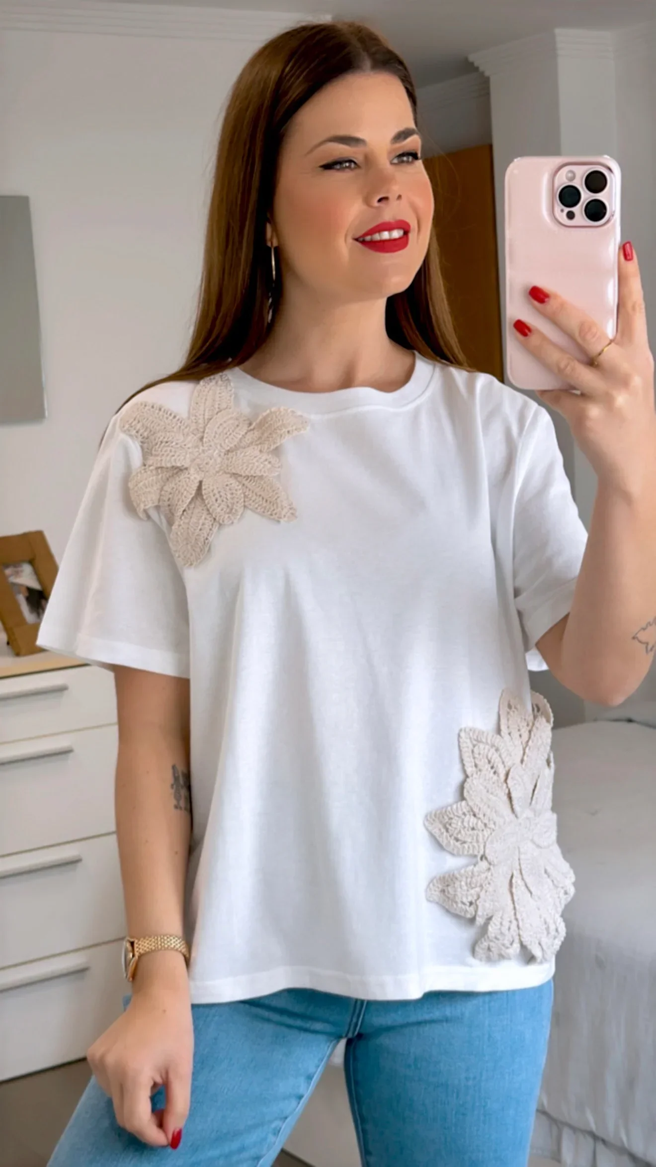 CAMISETA FLOR CROCHE