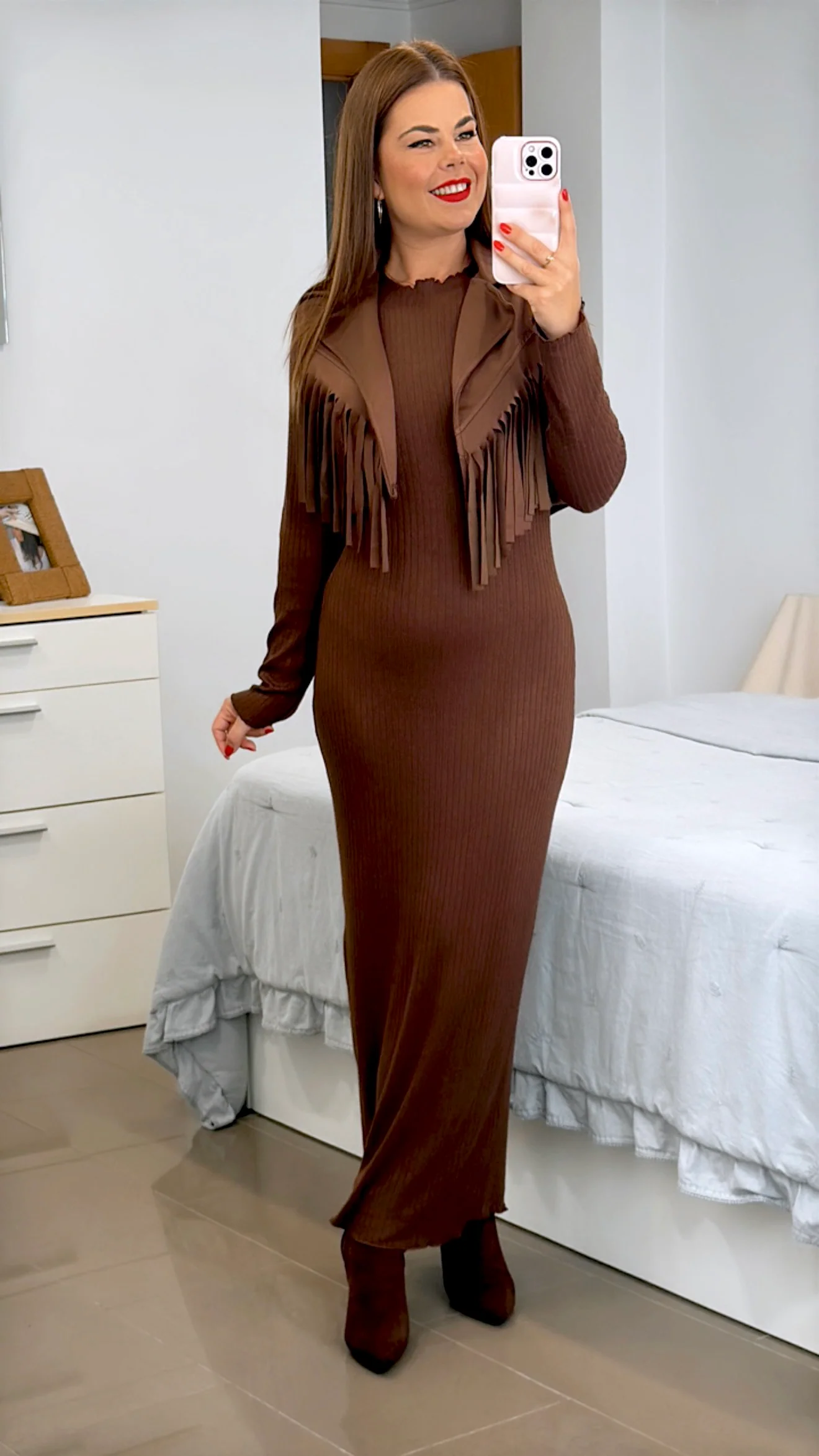 VESTIDO + CHALECO FLECOS